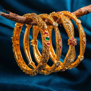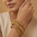 The thick, solid design adds a luxurious feel, while the intricate detailing enhances its royal appeal. These bangles are ideal for customers looking for statement jewellery that resembles real gold.