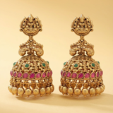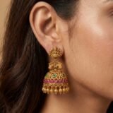 Beautiful traditional jhumka earrings with stunning craftsmanship. The detailed design and colorful stones give a rich, elegant look. Perfect for weddings and festive occasions!