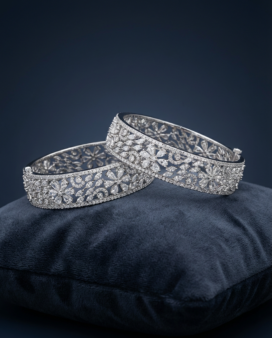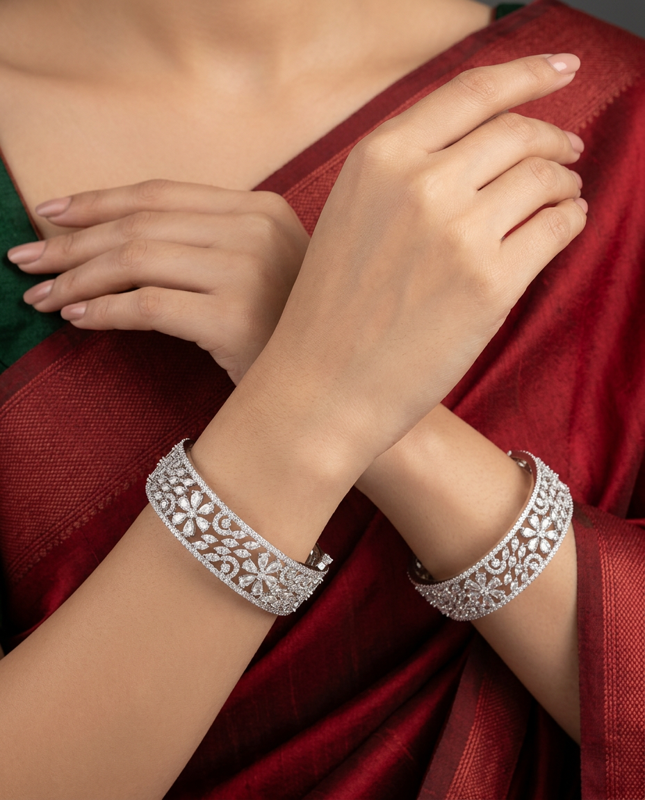 Perfect for weddings, festive celebrations, and special occasions, this bangle reflects timeless luxury with a modern silhouette. Its detailed craftsmanship and radiant finish make it a statement piece that elevates any ensemble.