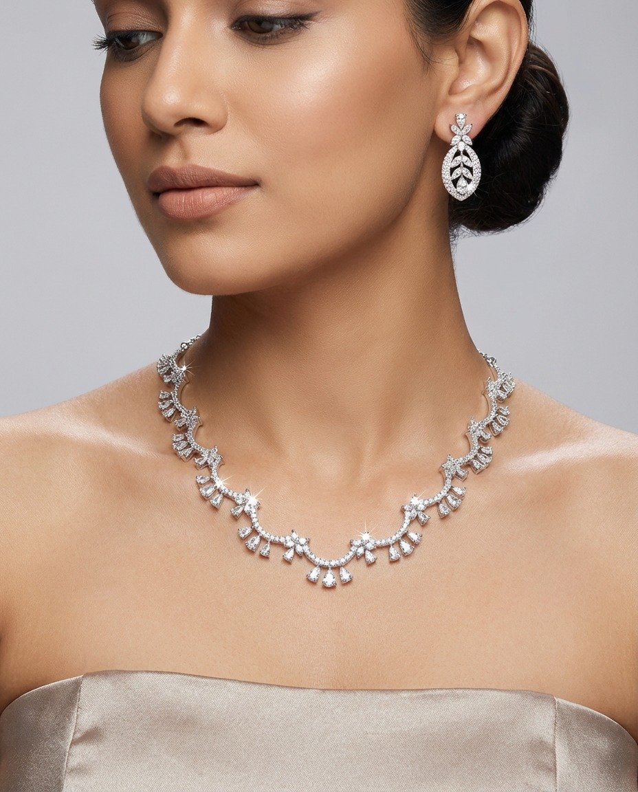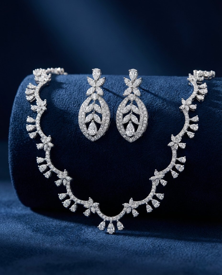 A graceful diamond jewellery set inspired by delicate leaf motifs and natural elegance.