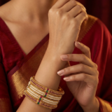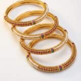 Perfect for weddings, festive occasions, and traditional celebrations, this bangle offers a timeless appeal that pairs effortlessly with ethnic attire. The harmonious combination of pearls and gemstones reflects classic craftsmanship and understated luxury.
