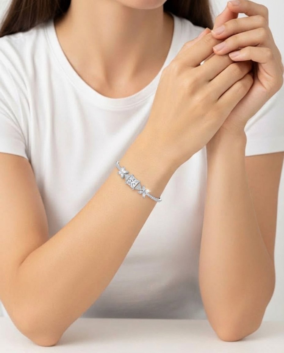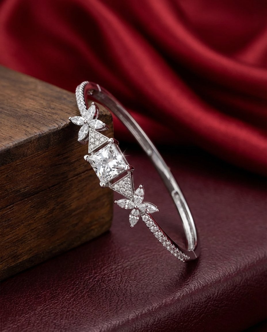 Perfect for weddings, celebrations, and elegant evening wear, this bracelet blends modern luxury with timeless floral artistry, making it a captivating addition to any fine jewellery collection.