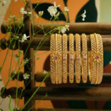 Add a touch of timeless tradition to your jewellery collection with this beautifully crafted bangle set. Designed with intricate lattice work and fine detailing, these bangles showcase a rich gold finish that gives a premium, authentic look.