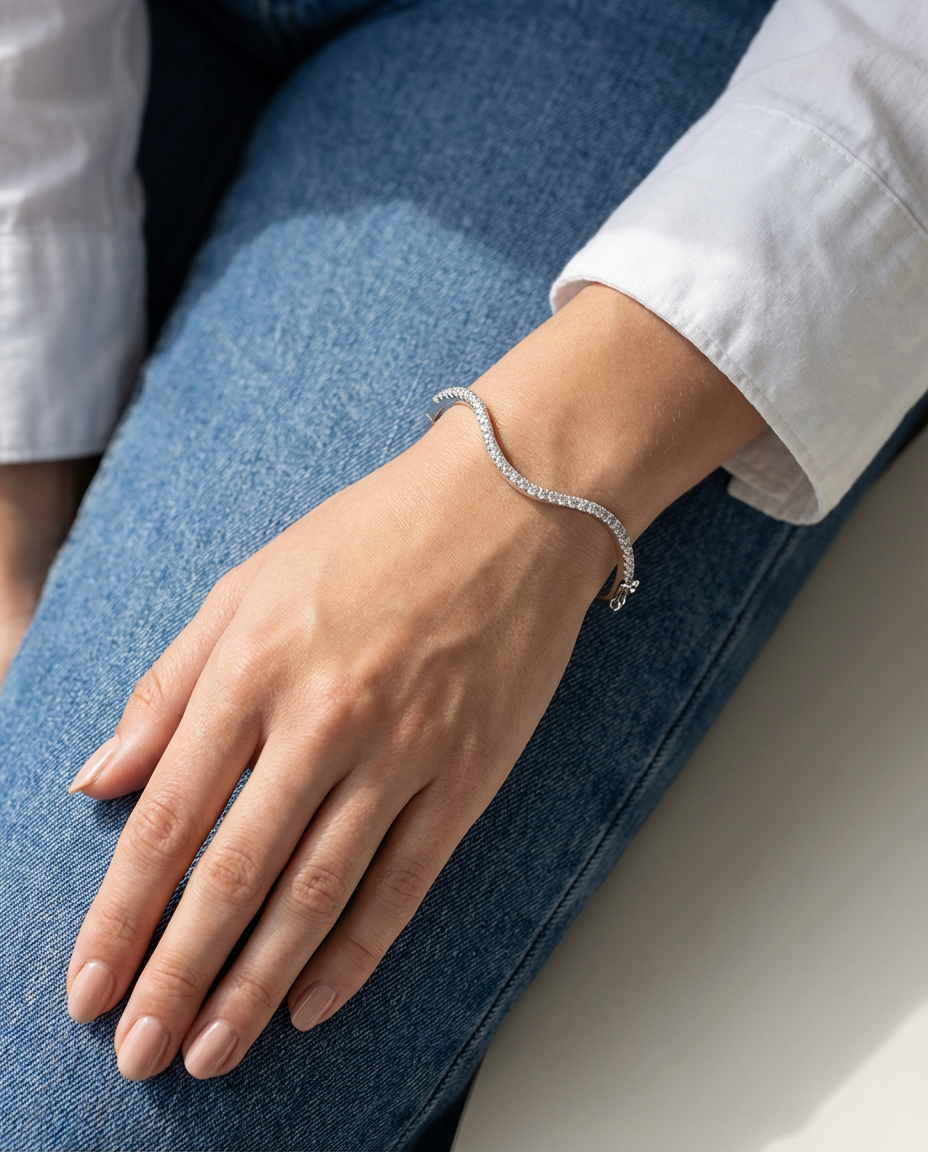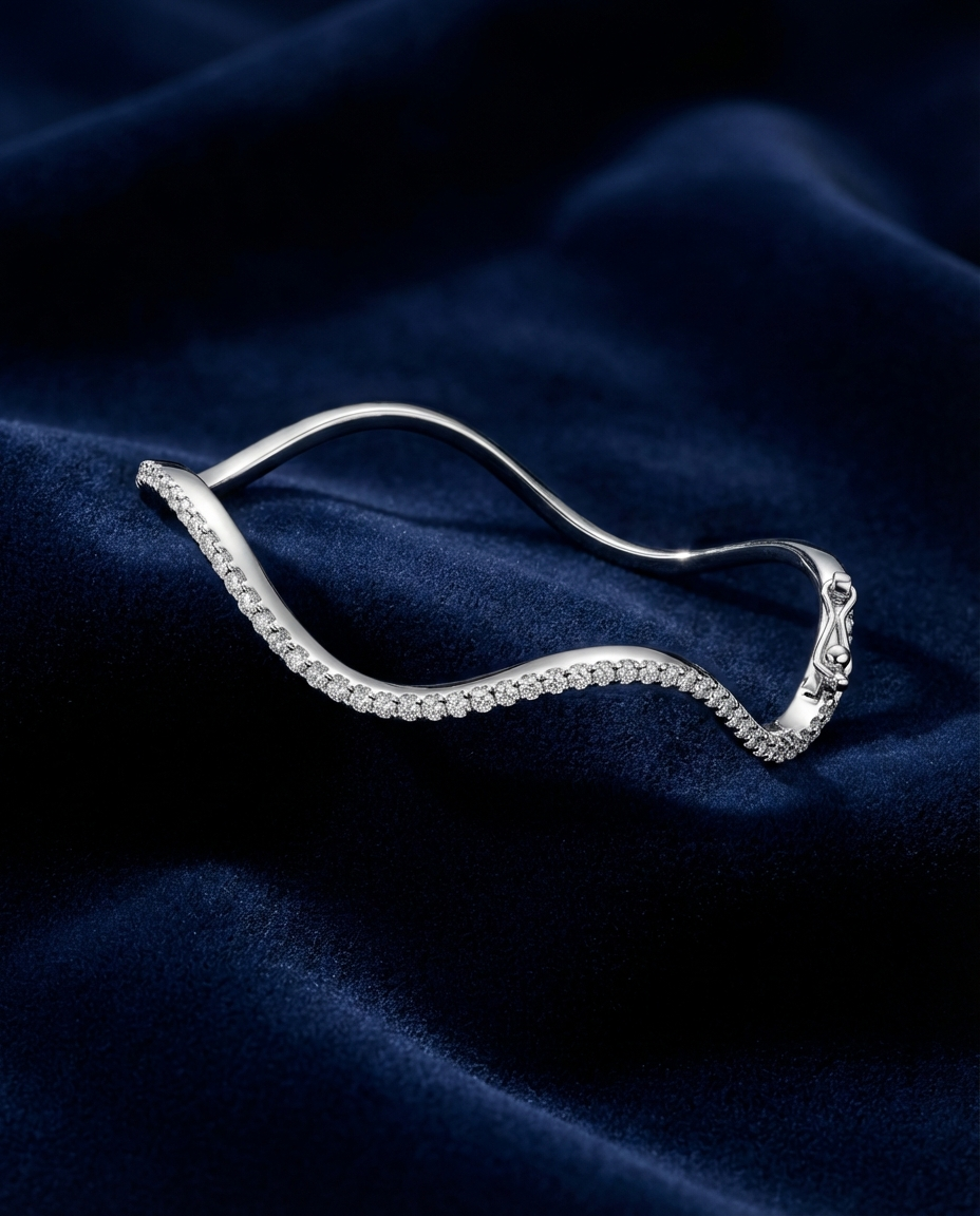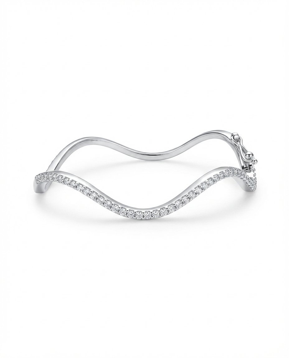 A sleek diamond bangle with a flowing wave design for modern elegance.