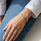 This graceful diamond bangle is inspired by fluid movement and contemporary design. Crafted with a smooth wave-shaped silhouette, it is lined with sparkling diamonds that follow the gentle curves of the bangle, creating a refined and eye-catching look.